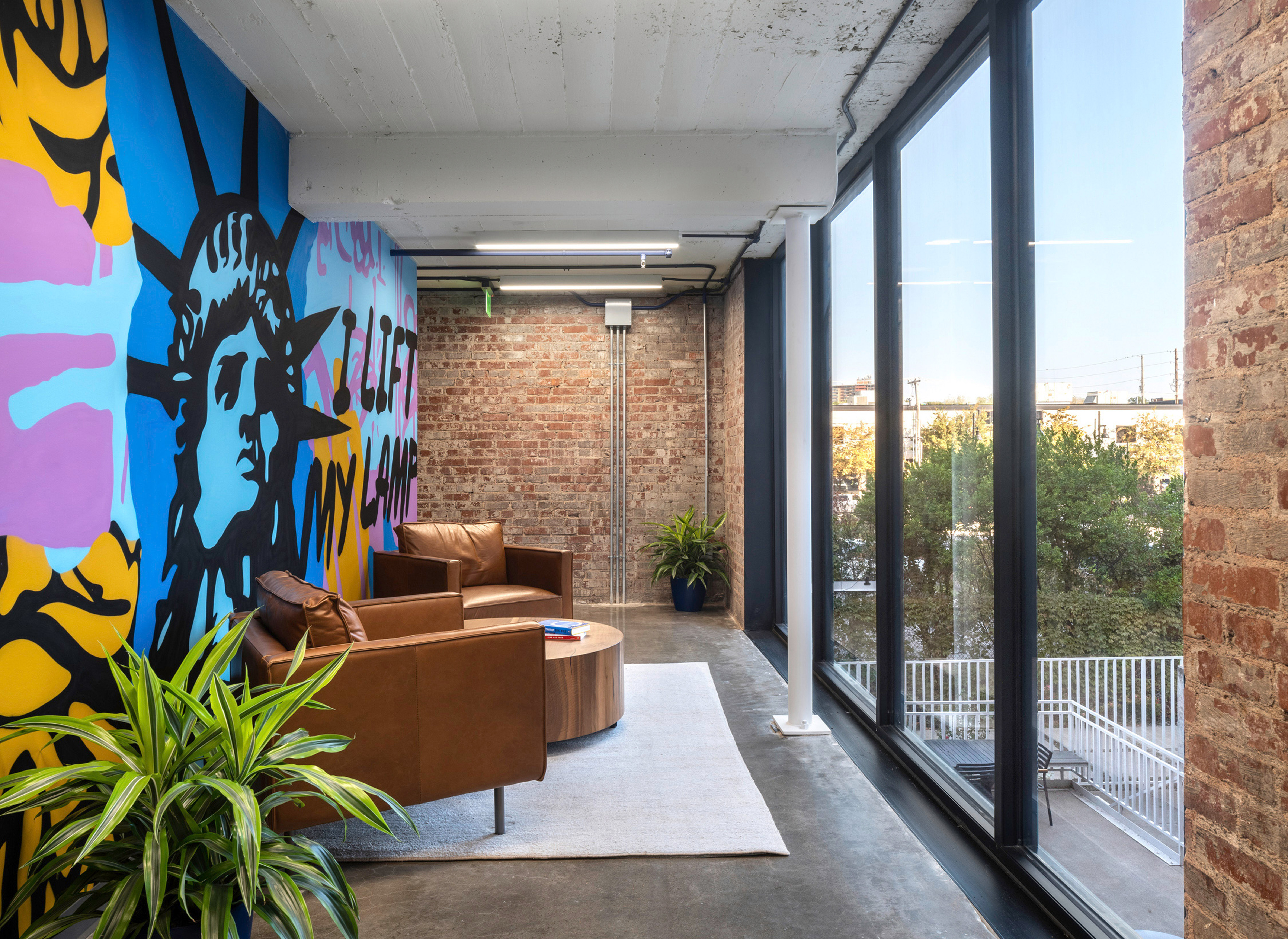 Atento Capital, a Tulsa-based investment firm whose mission is to help creative young entrepreneurs get their start, approached 1Architecture about converting a 1930s brick building into a thriving new work space that exemplified their philosophy. Completed in 2022, this 5,000 sf adaptive reuse project created 18 fully enclosed offices, several small break-out meeting spaces, a large community table for working and entertaining, as well as a large conference room. Two large areas of brick were surgically removed from the façade to allow for additional daylight into the building and blur the boundary between inside and out. 1Architecture, seeing the potential of the adjacent exterior space, designed an elevated patio and an eye-catching outdoor feature stair. Other unique amenities include a hidden speakeasy with a ‘Scooby Doo’ bookcase door and wall taps with libations, cold brew coffee, and multiple types of water. A dozen different artists were commissioned to provide inspiration throughout the office. The art integrates with the architecture to shape a truly one-of-a-kind workspace.